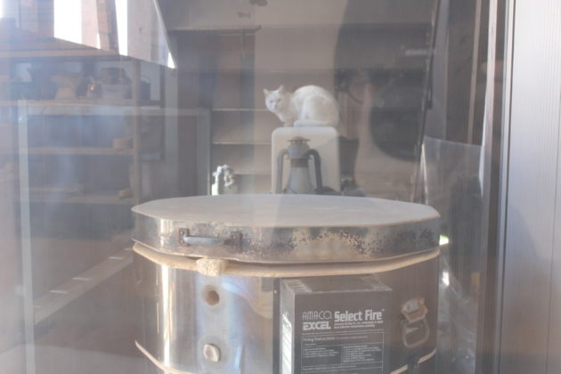 朝のテレビでも「そろそろ2018年に慣れてきましたか」と言ってましたが節分が過ぎるまでの1月は温暖な静岡でもさすがに寒くてインフルエンザなんかも猛威を振るう時期。休日もついつい家から一歩も出ずに、なんてことになりがちです。そこを生かして?土曜日はショップをオープンしました。素焼きの窯焚きもしながらのんびりとお客様を待っていたら私たちが「ちろちゃん」と呼んでいるにゃんこがご来店。と言ってもお店には入ってこないのですが。ちろちゃんは頭が良い子なので窯焚き中は窯の上には上がりません。餌だけ食べてこの日はさっさとお出かけしてしまいました。ちろちゃんオッドアイズで(金目銀目)とても美人さんです。1%しか出会わないそうなので幸福を呼ぶ猫と言われることもあるそうですよ。そのおかげもありお客様がお見えになりました。