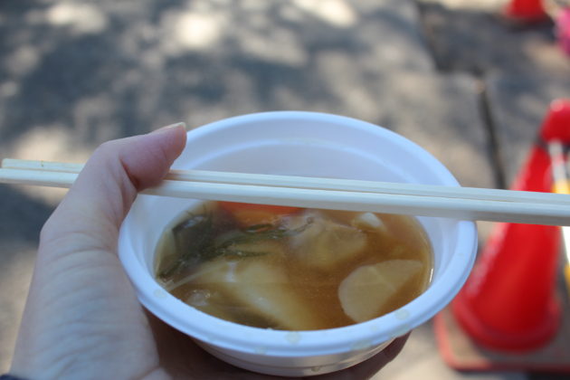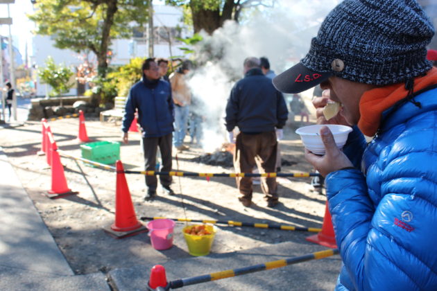 日曜はしっかりお休みいただいて朝から近くの神社で「昔遊び」に参加しました。町内でやっている恒例行事で、境内ではすいとんを作って食べたり焼き芋したり、ゴムでっぽう、駒回し、社務所ではリリアン、ちりめん細工、毛糸あそび、行儀作法と言ってお茶を点てていただくお部屋もあります。全部ご近所の方が子供たちに教えてくれて用意してくれるので、とっても人気。今年は特に大勢人が来ていた気がします。高騰中のお野菜もやはり町内の方の畑から譲ってくれたので、とてもおいしい「すいとん」が頂けました。