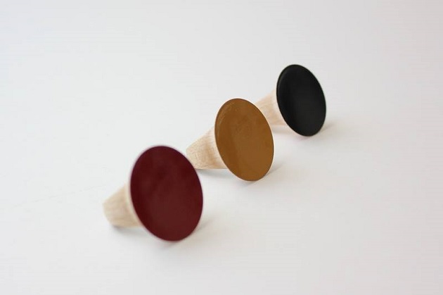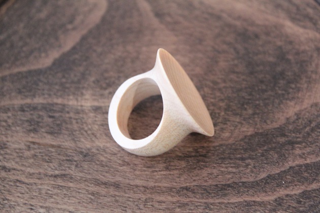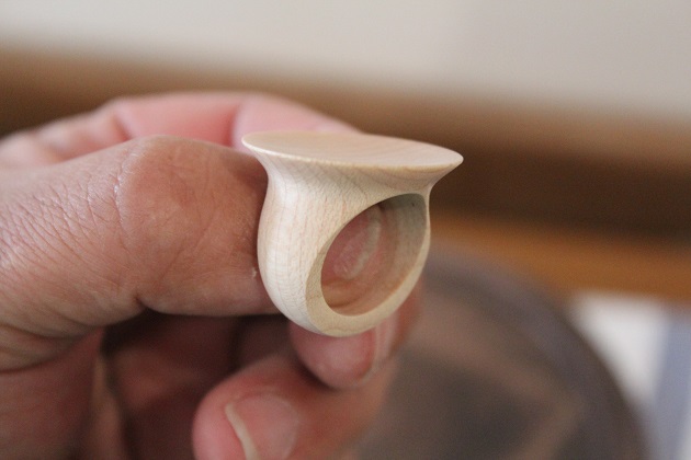 何度か試作を重ねて出来上がったringははめてみるとまるでお皿がちょこんと乗っているようです。16のデザイナーの佐藤さんもとても喜んでいただけたようです。この後漆で色を塗られ、そしてその作品は海を越え海外NYCに。