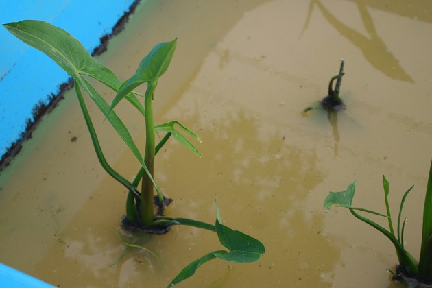 スーパーで半額だった「くわい」も植えてみました。