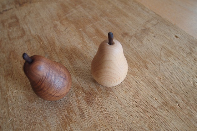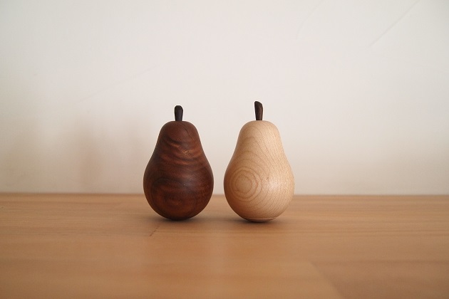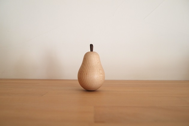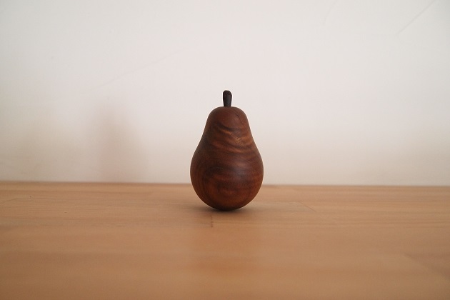ゆらゆら揺れるペーパーウェイトです。木の中に錘が入っています。オイルフィニッシュで自然な艶があり経年変化が楽しめます。すべての加工が手作業なのでひとつひとつ微妙に形状が異なります。また梨のモチーフのカーブに沿って独特な木目が浮き上がります。