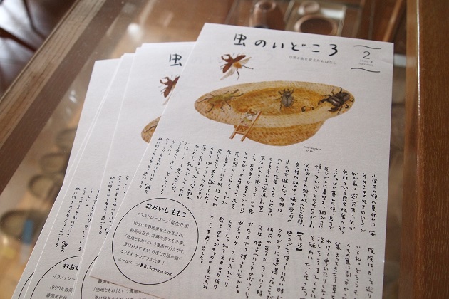 涼しい夏ですが、夏っぽいフリーペーパー「虫のいどころ」が届いています。「おおいしももこ」さんの懐かしい感じの文章と可愛いのに精密なイラストに引き込まれます。まだ数枚ありますのでぜひお手に取ってみてください。(年内に彼女の作品の展示も予定しています)
