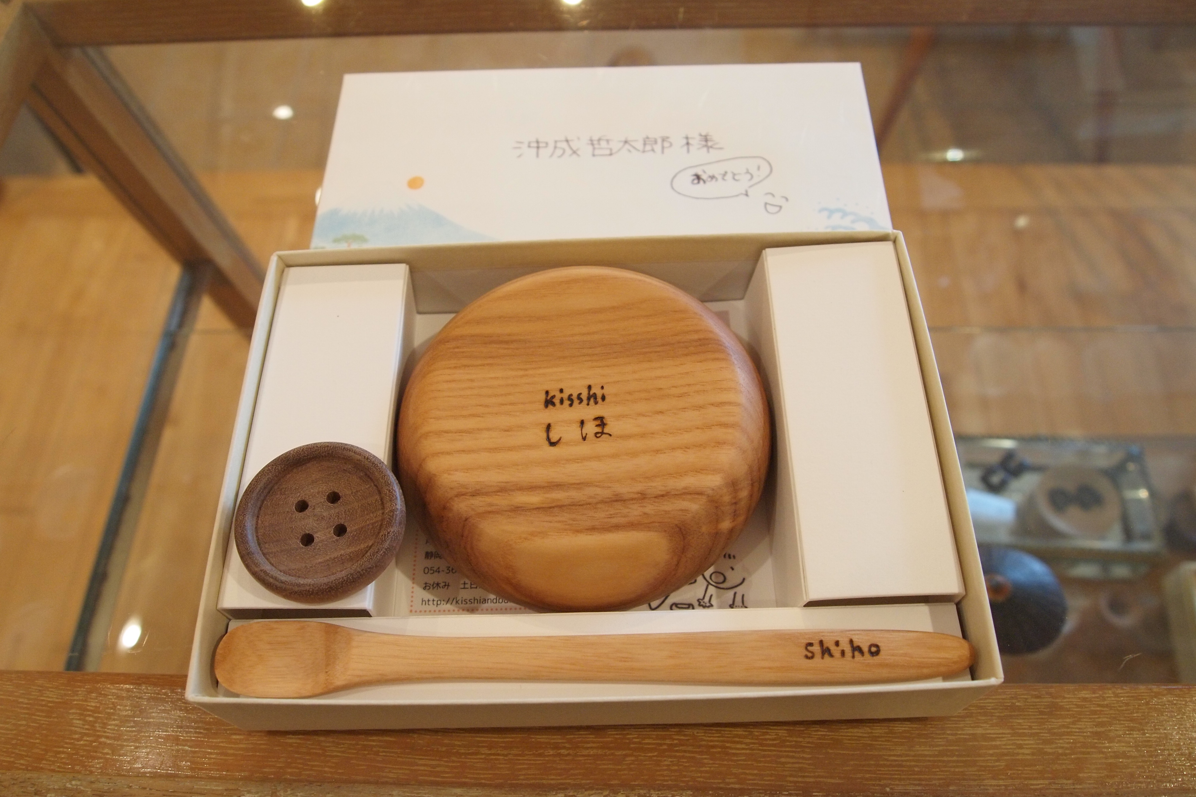 お名前を書くサービスが人気のママトルネギフトセットです。アソートで木のボタンが付きます。スプーンレストにしても、ゴムを通してチャームや髪留めにしても◎オンラインショップからもご注文できます。お待ちしております。