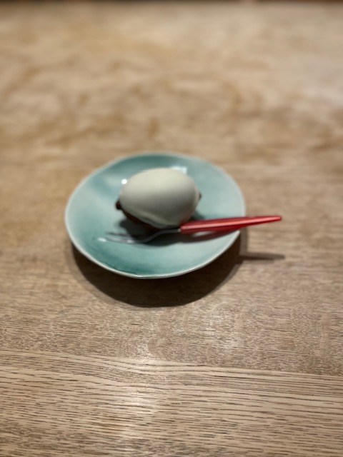 <ブールドネージュマダン> 庭と名付けられたかわいい包装紙に包まれたのは新緑を感じるくちどけほろりなブールドネージュ、新茶とミントのさわやかな香り