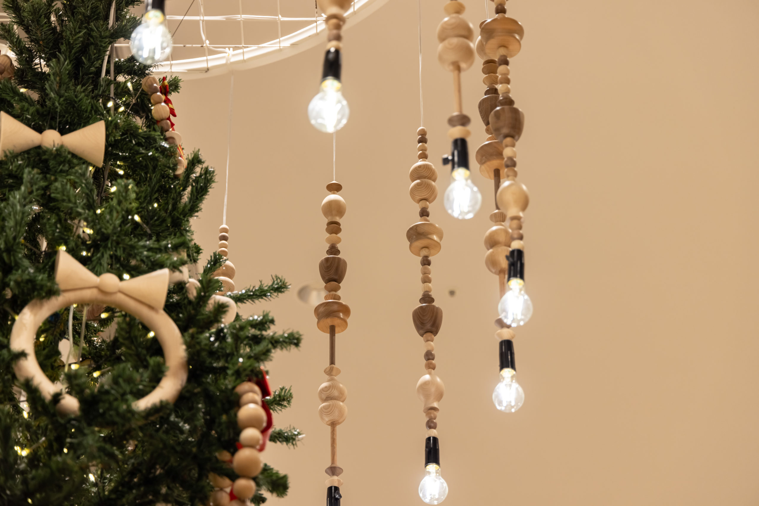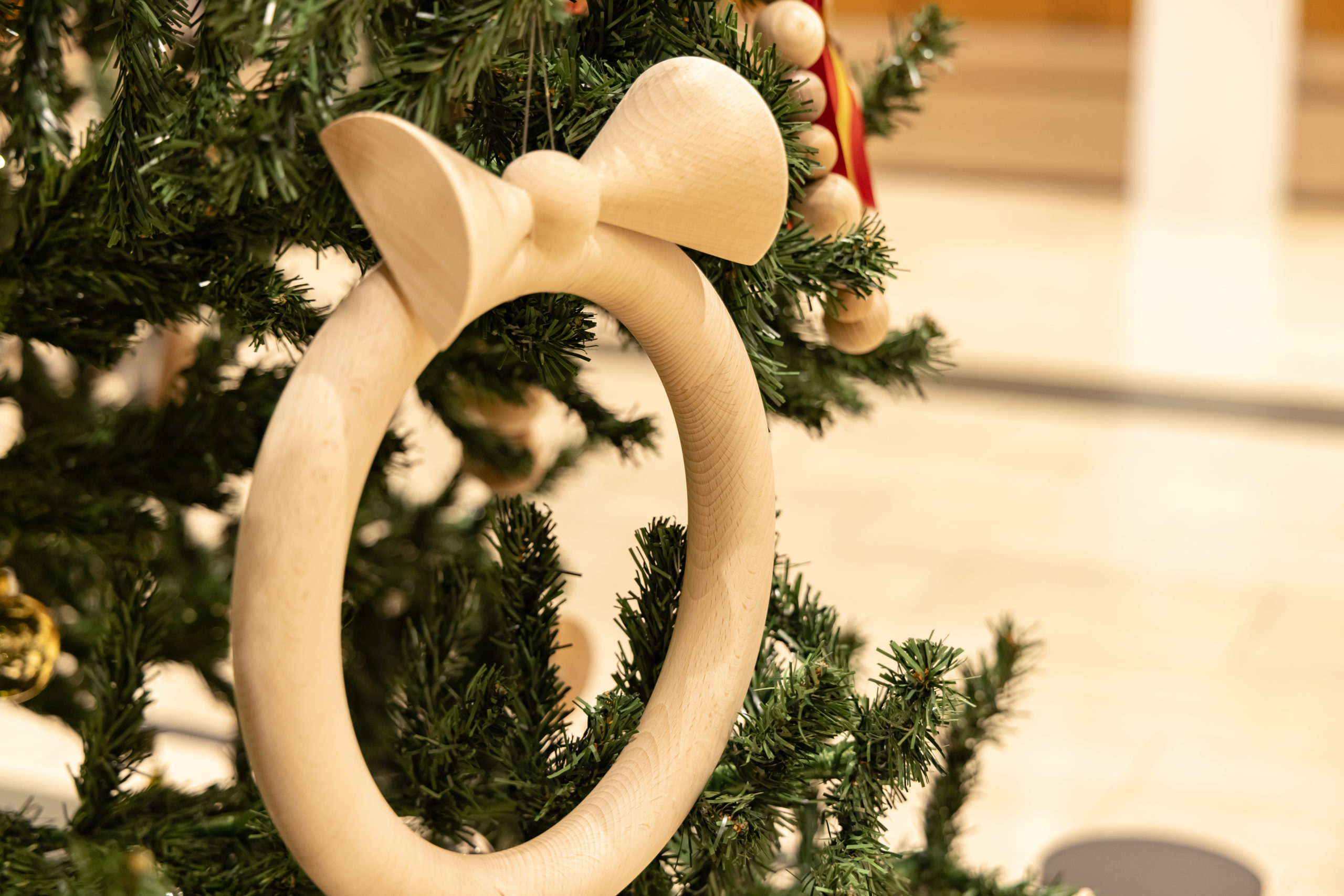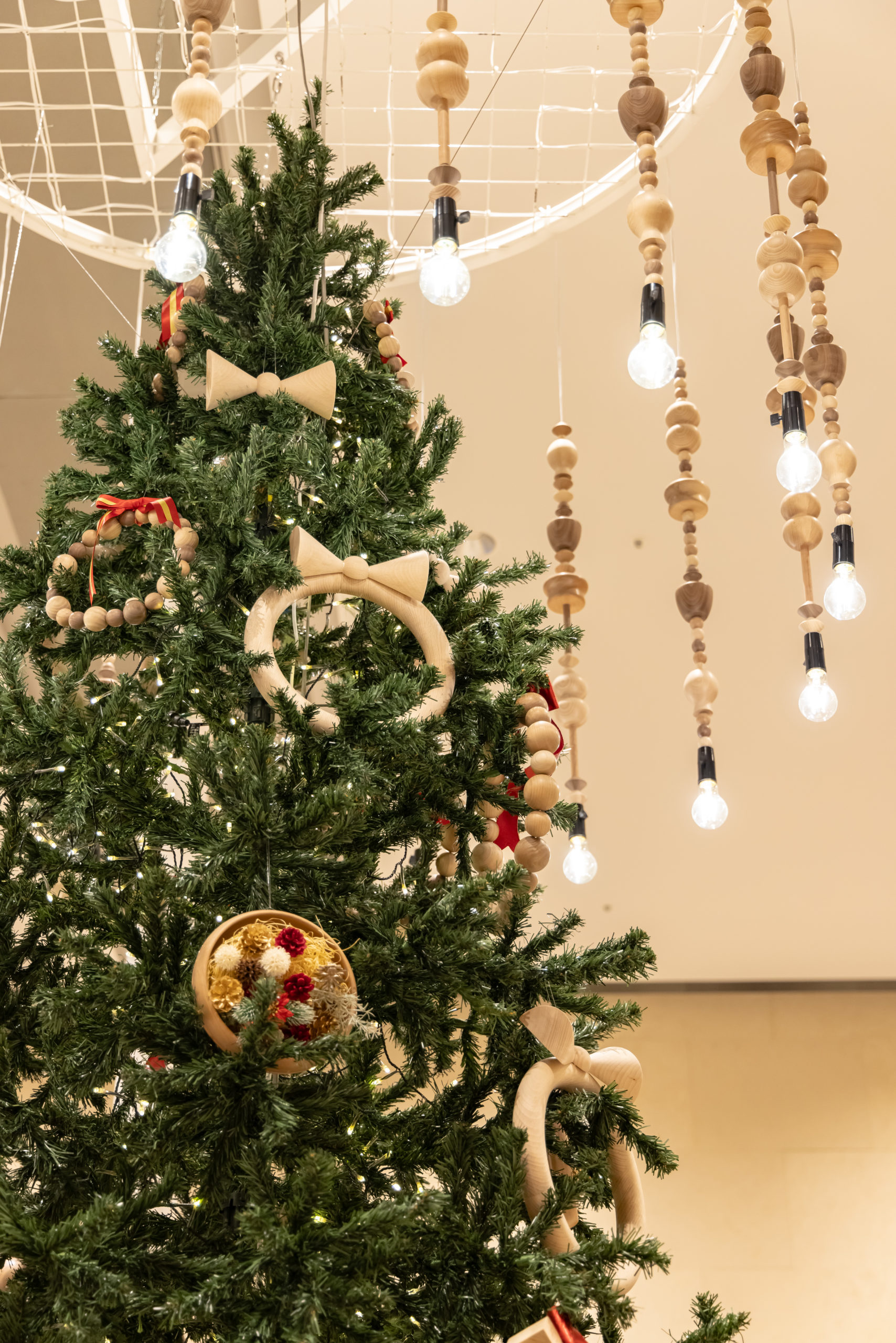 2023年の駿河竹千筋細工に引き続き、静岡市の伝統工芸である「挽物」を使用したオリジナルオーナメントで装飾した和モダンなクリスマスツリーがグランシップにご来館のお客様をお迎えいたします。