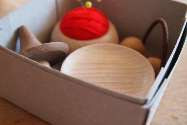 お裁縫始めるのに手元にちょっとあると便利なセット。近く用メガネ、髪留め、針が転るのを防ぐピンクッションとマグネット。キャンドルスタンドはアクセサリーを外して置いたりチャコを置いたりするのにも便利です。思い思いにお使いください。