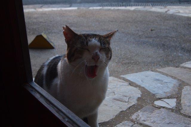 この辺のボスの「こたろう」です。ぽんちゃんとか、もっと横文字のおしゃれな名前でも呼ばれています。こたろうは、こころやさしいボスなので、餌は食べきらずにみんなの分を残していきます。イヌみたいに手足が大きくて立派です。最近鼻を怪我していて、耳もボロボロ。喧嘩してるのかな。今週末は19日の土曜日はお休みです。20日の日曜日は営業します。。