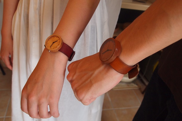 お若いお二人がペアでされておりました。革の色も良い感じに変化して気になる時計のボディーも木の風合いが飴色になり更に良くなってました。UVレジンで2回固めてあるそうで生活防水程度の加工です。有難いですね。この感じで見ると若干男性の方が使い方がワイルド感ありますね。それも個性、味というもの。世界でたった一つの宝物ですね。本当に素敵でした。娘さんの物を見てずっと欲しかったと、お母さまが本日Sサイズをご購入。こういうエピソードいいですよね!うらやましいなあ。