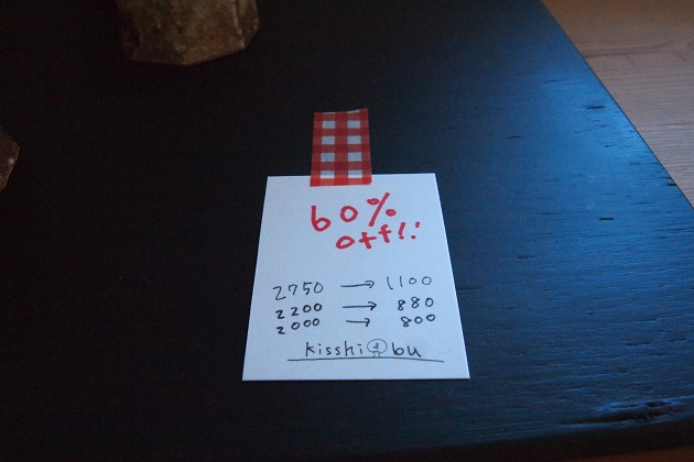 気まぐれにお安くしたものや、制作者しか分からない理由の値下げ品、アーカイブなどなど。