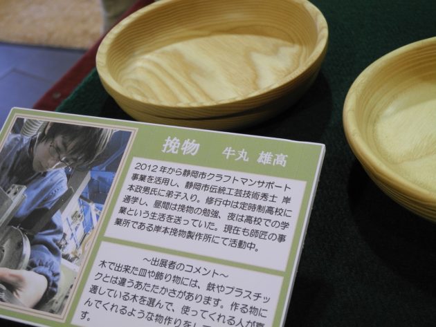 匠宿では弊社在籍の牛丸雄高くんの作品が展示してあります。若手職人展と題して伝統工芸に携わる職人さんたちの器や家具、アクセサリーなどが並んでいます。牛丸くんの作品は決してたくさんではありませんが、ここまで作れるようになるのはとてもとても大変な事なのです。まだまだこれからの彼をサポートしつつ、みなさんにも手に取ってみて頂くチャンスも増えてほしいと思っています。