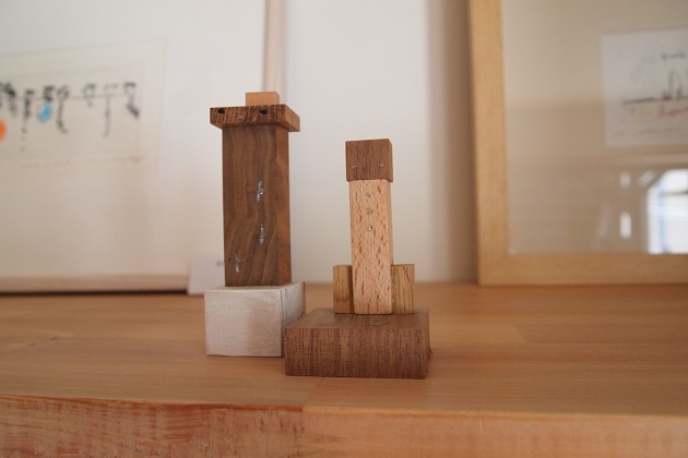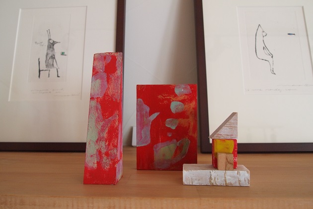 木にアクリル絵の具と蝋で彩色したものです。それぞれに名前があってクスっとしたりほっこりしたり。壁に掛けられるものはお部屋のアクセントになりますね。